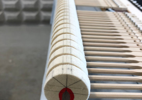 Includes all items from the Half-Day Service with greater emphasis on the piano hammers and overall tone of the instrument. In conjunction with action work, the hammers are "voiced" through shaping and adjusting the relative density of the felt. This service is specifically geared towards high-end pianos, and clients that require concert-level regulation and voicing.